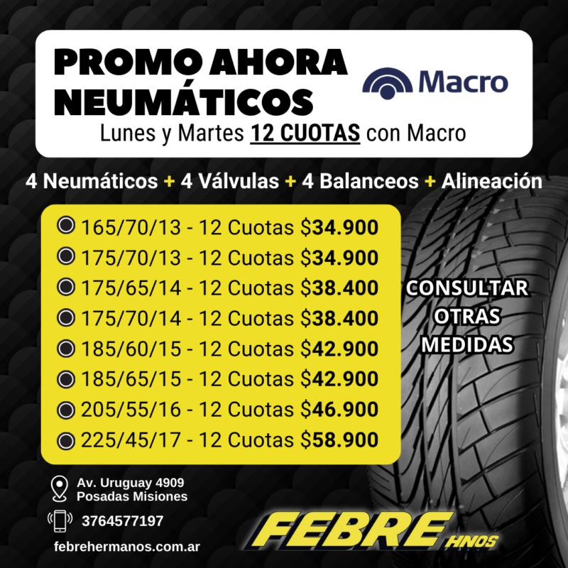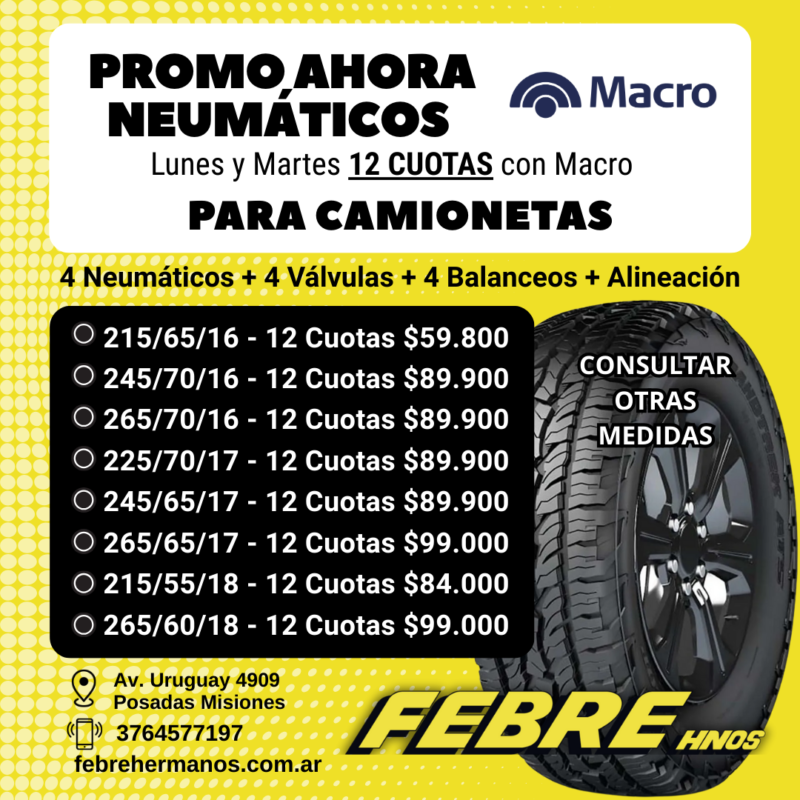 Tomamos tus neumáticos usados como parte de pago. Comprá en Cuotas con Ahora Neumáticos.